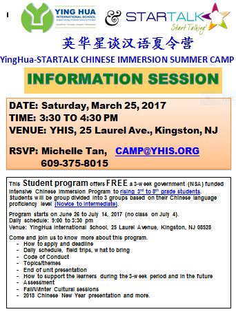 The Harmony Schools Summer Camp Open House, 2-4pm., 139 Village Blvd., Princeton Forrestal Village.