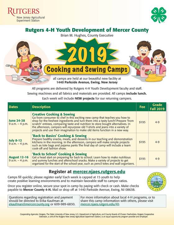 Mercer County 4-H is a youth development program operated by Rutgers Cooperative Extension which provides research-based, hands-on learning experiences for youth across Mercer. For more information about 4-H, or about entering projects in the fair, please contact Altaira Bejgrowicz at the Mercer County 4-H Office at (609) 989-6830 or bejgrowicz@njaes.rutgers.edu.